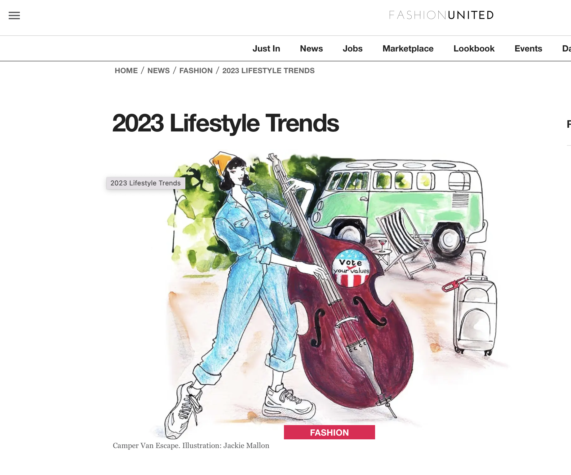 Camper Van Glam illustration to accompany a Lifestyle Trends forecasting piece on FashionUnited May 2022