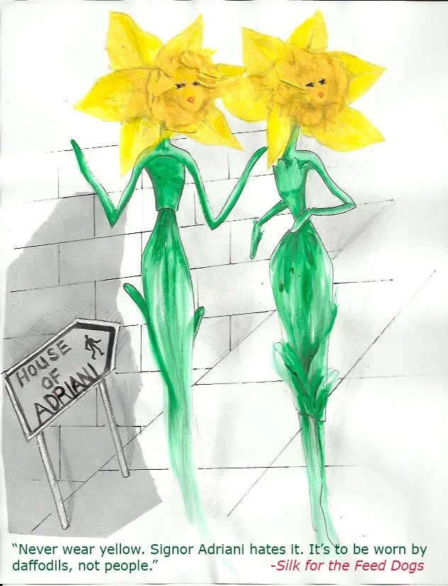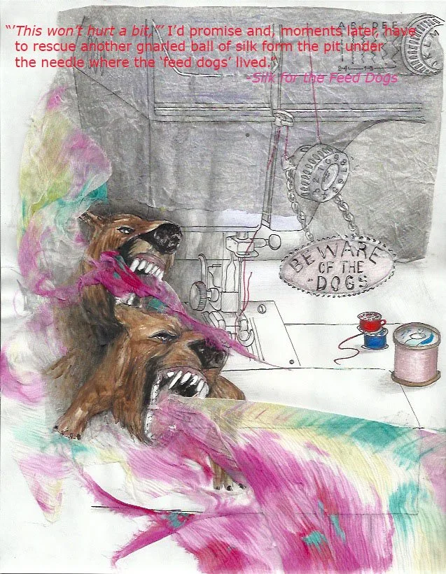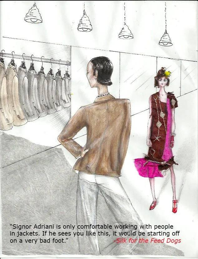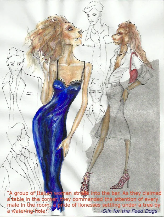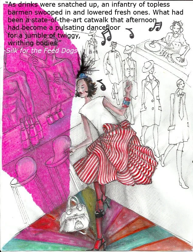 My debut novel drew upon my decade’s experience as a designer in the international fashion industry to bring to life the assorted grand maestros, sycophants, oddballs, and jesters that populate protagonist Kat’s life. The menacing sounding “feed dogs” are the metal teeth of the sewing machine that feed the fabric through. Need I say more?