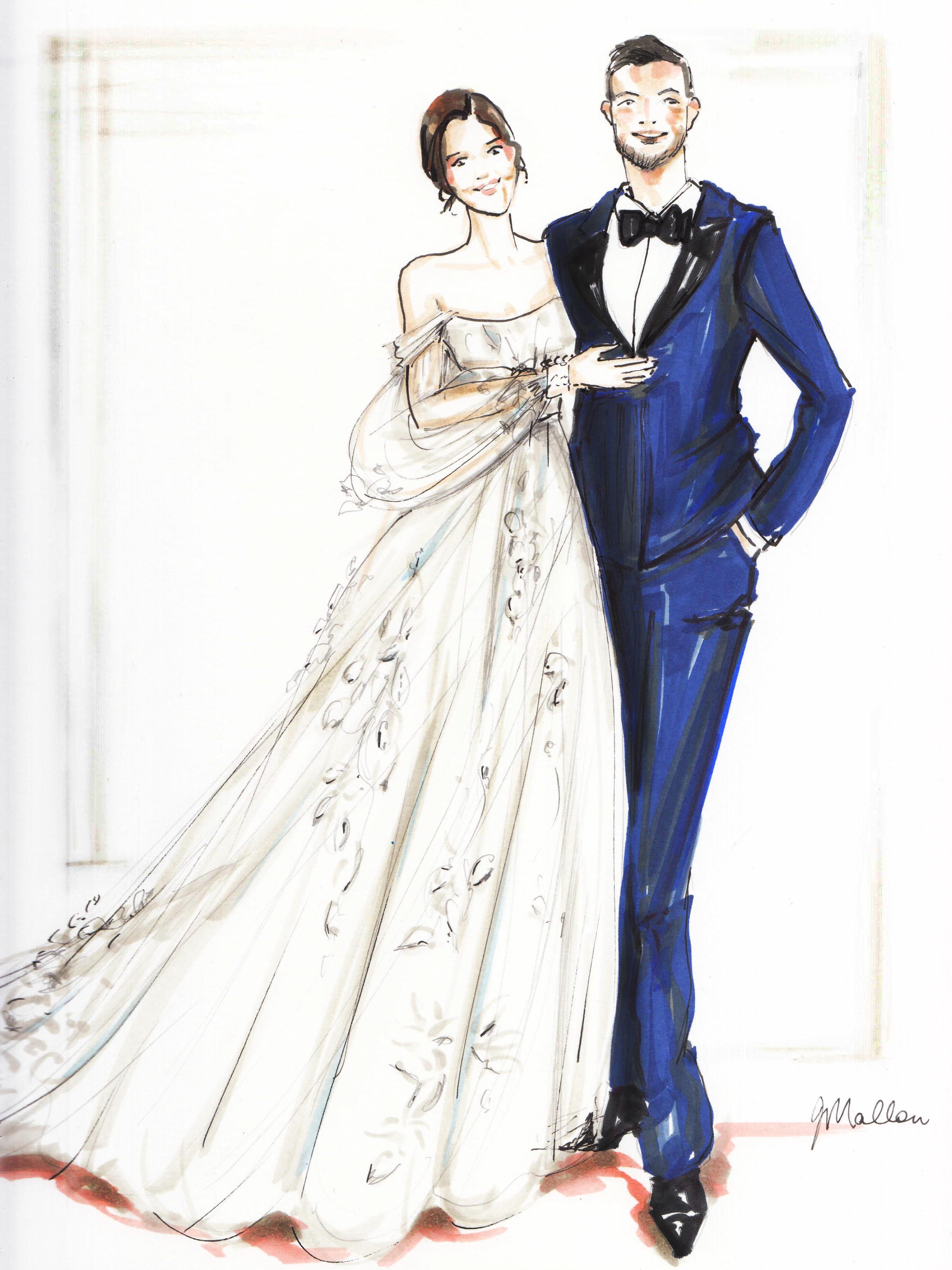An example of a live sketch of wedding guests plus calligraphy monogram detail